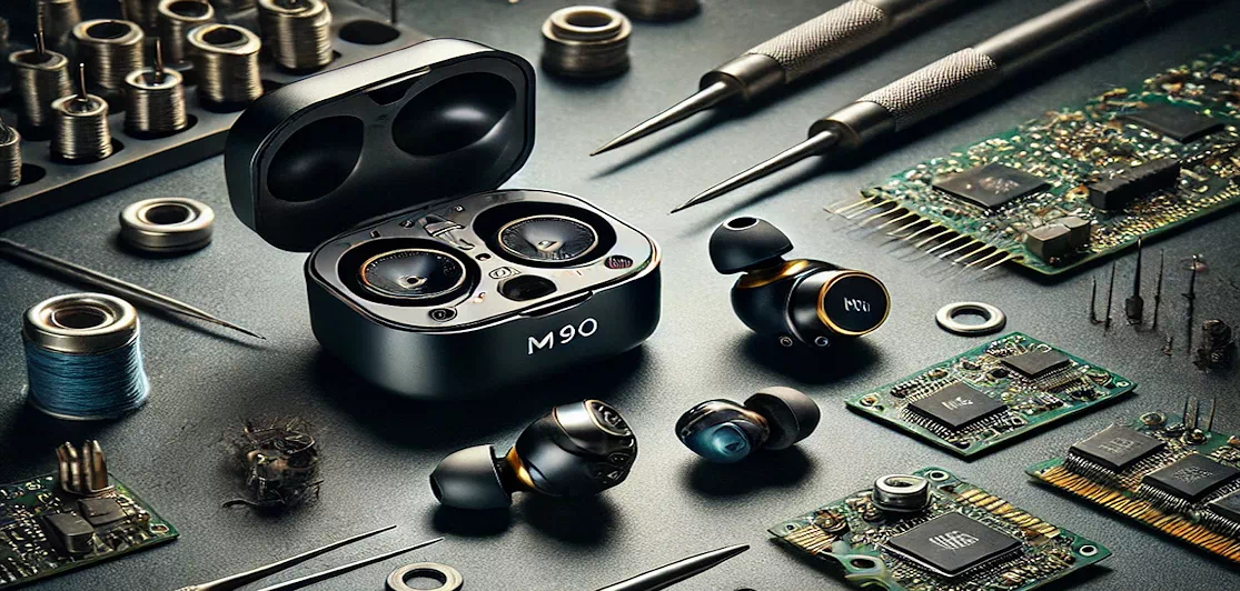 - M90 케이스에 모두 설치했으면 배터리가 충전이 잘 되는지, 이어폰이 충전되는지, 잘 작동하는지 확인합니다.